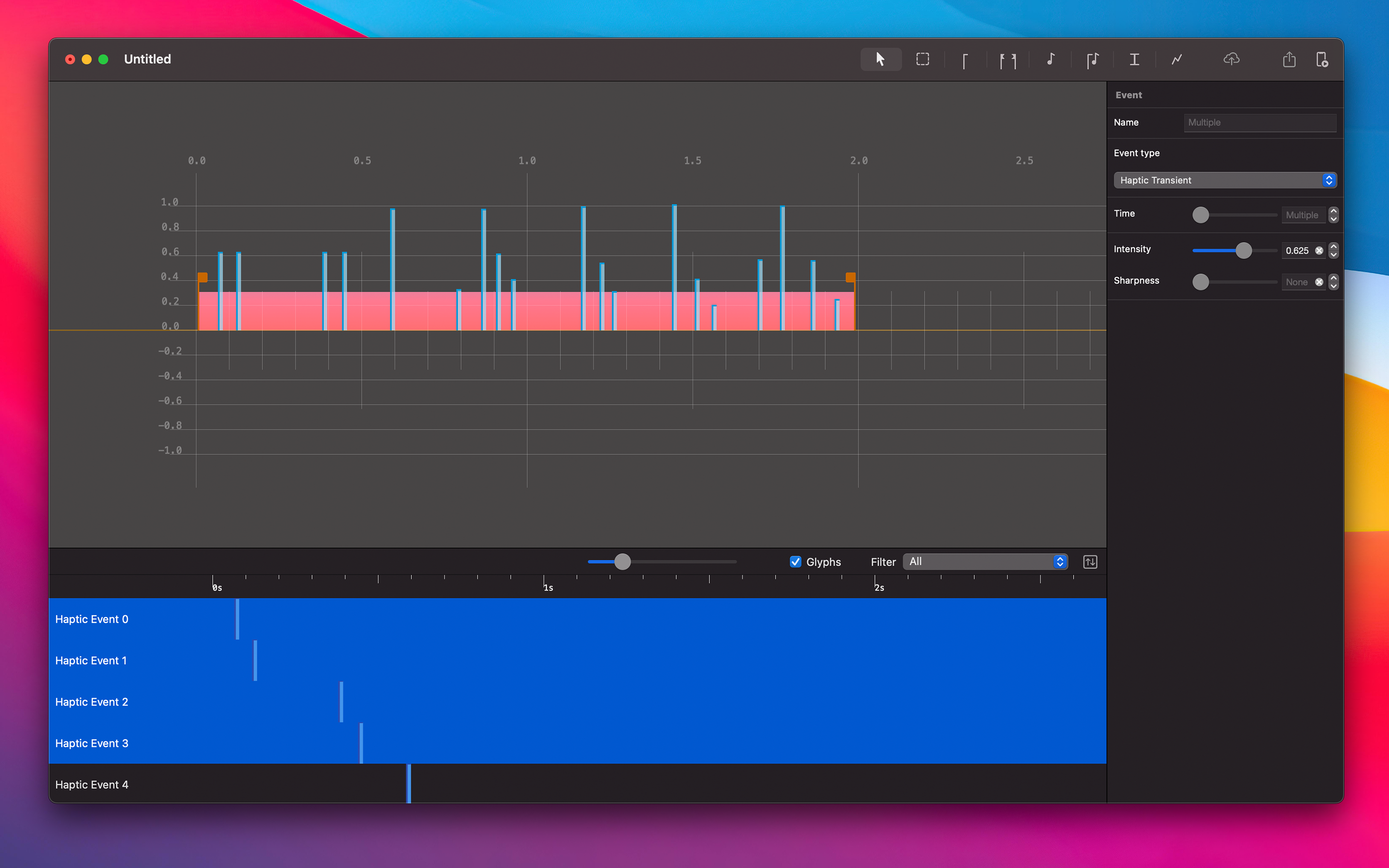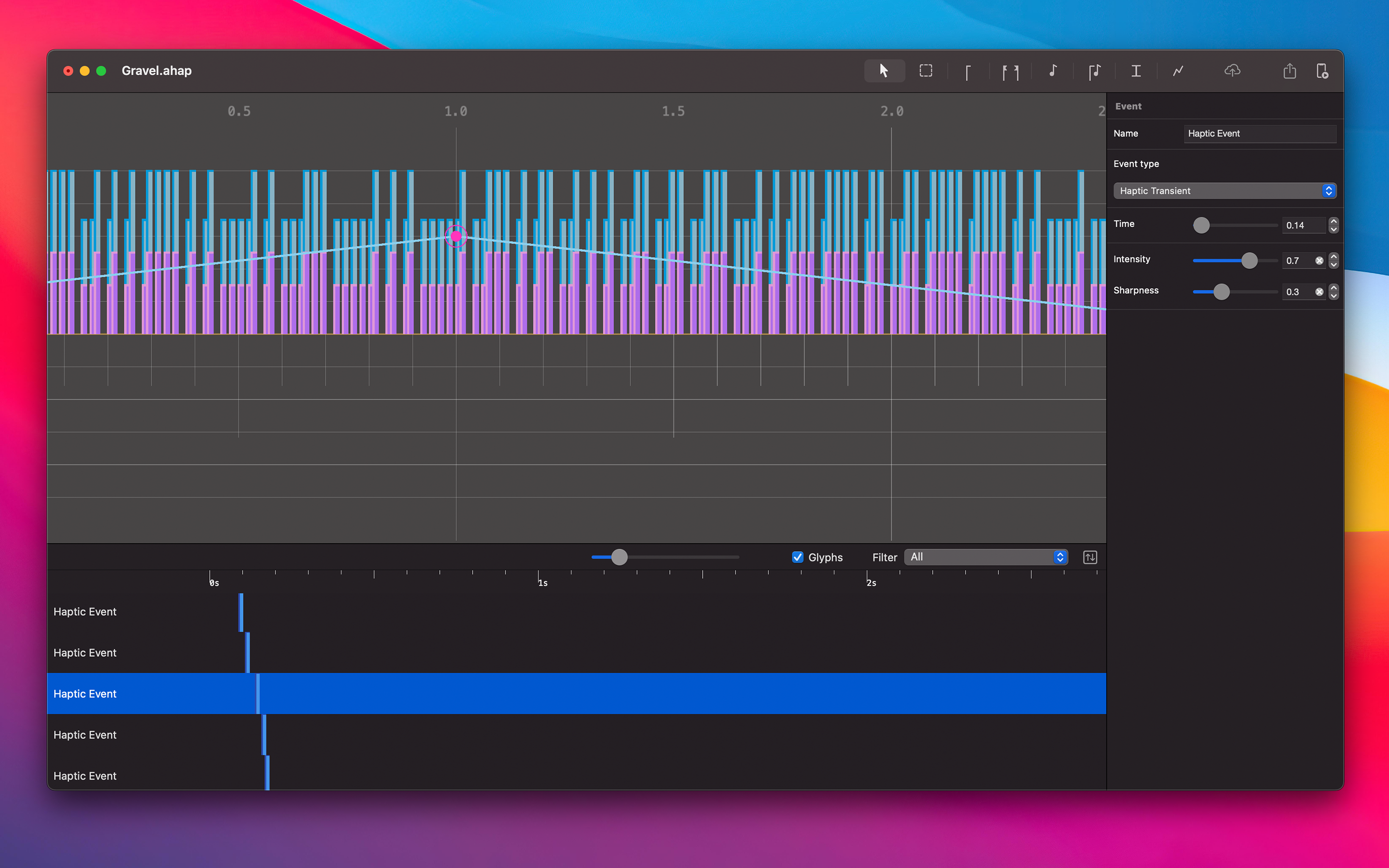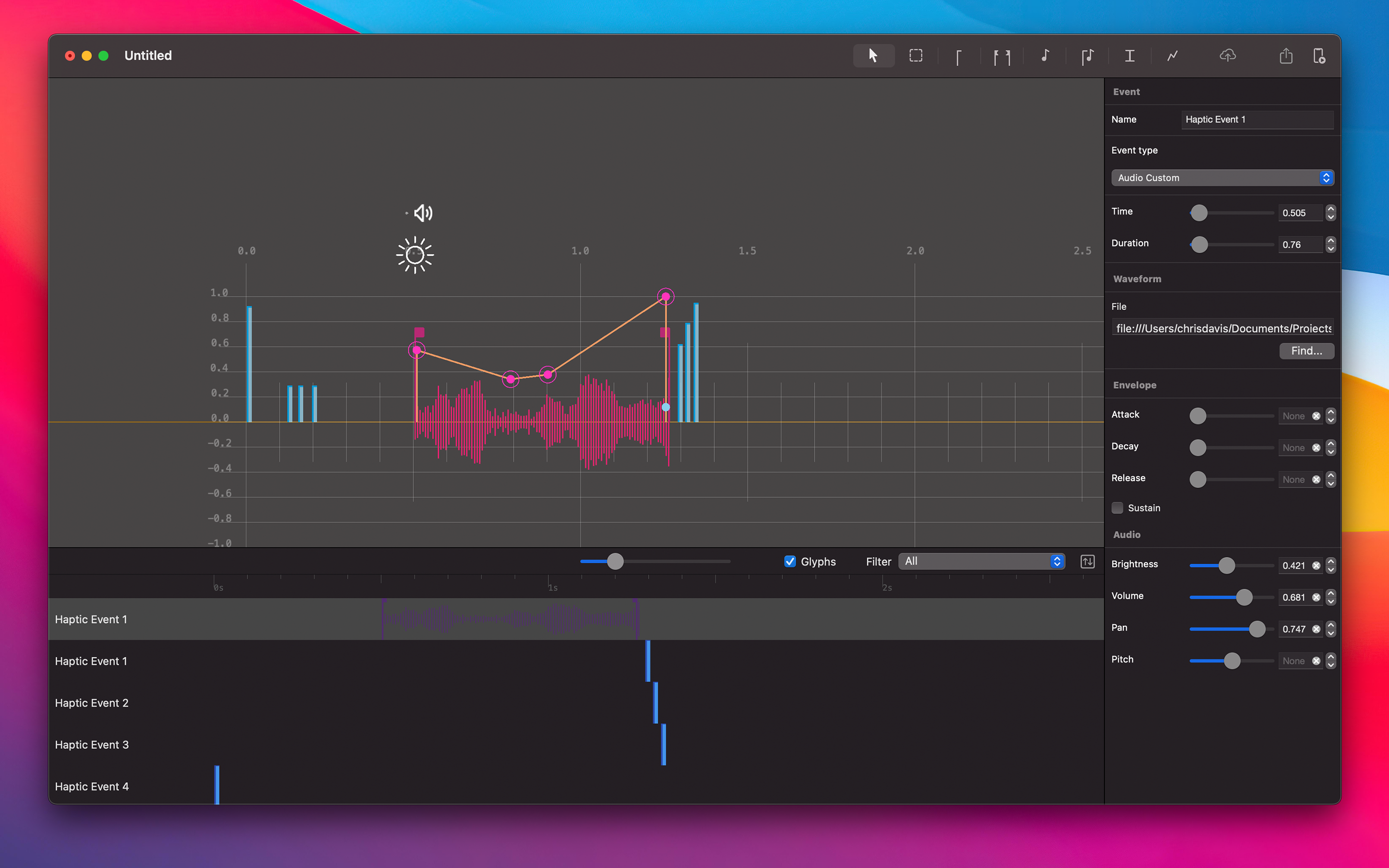The Haptic format is JSON, I wanted to create an editor that let you draw the experience, and then export that to your iPhone where you could feel it