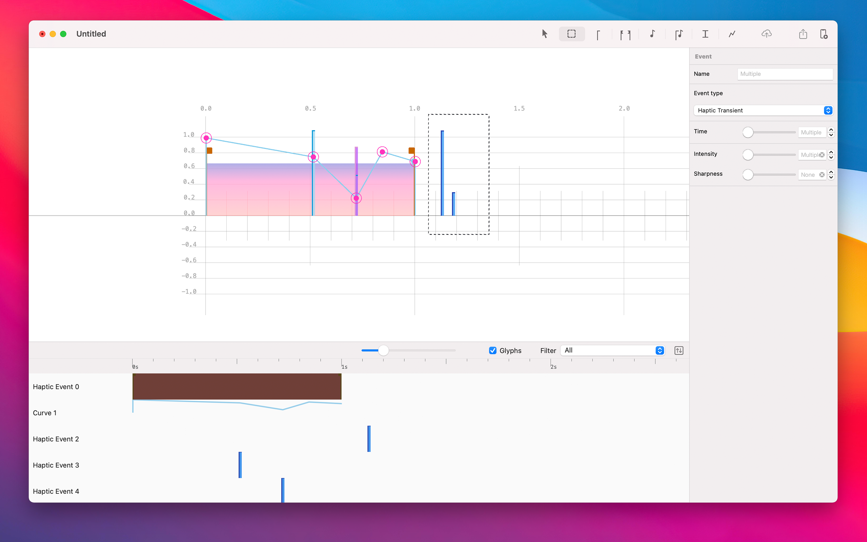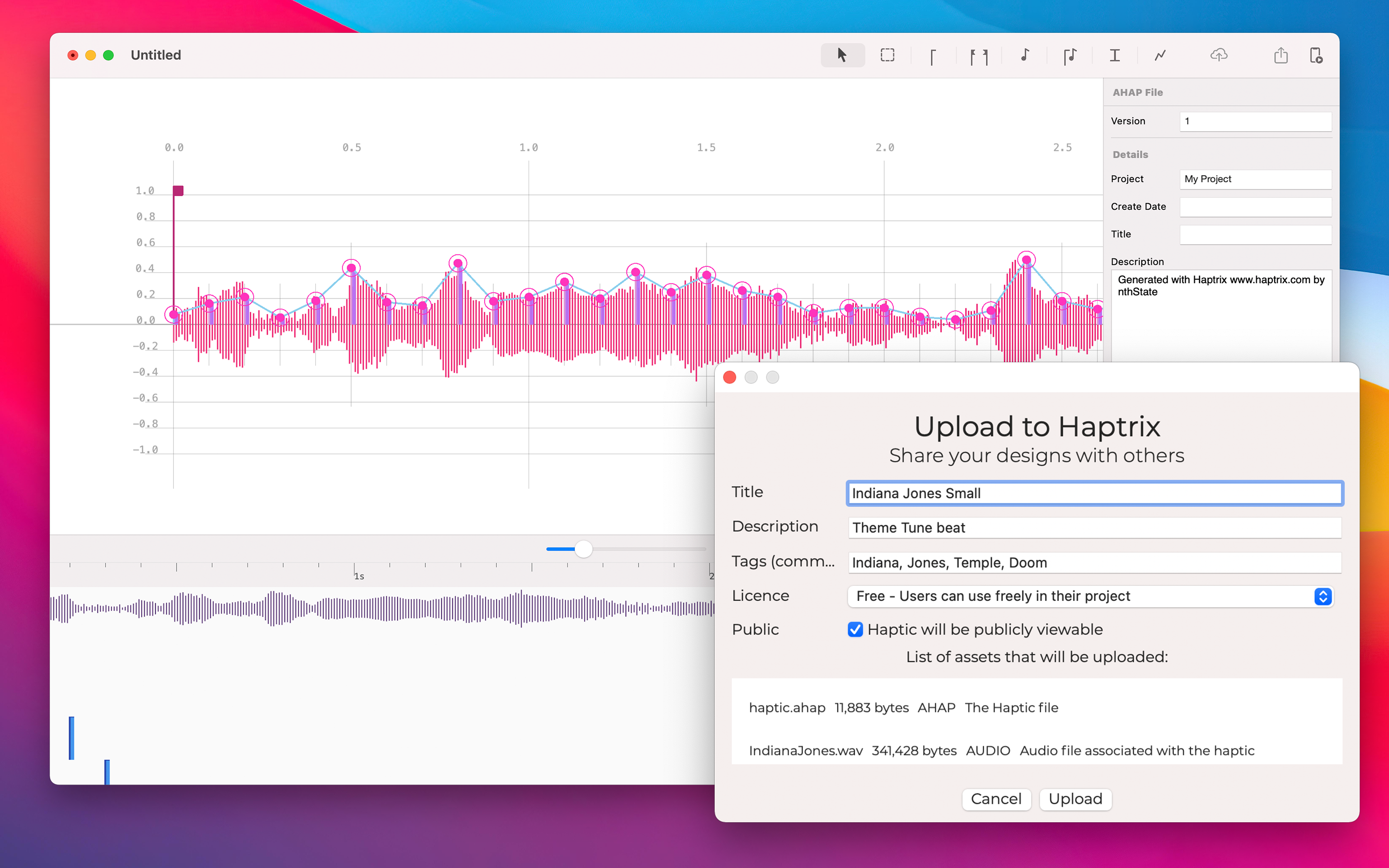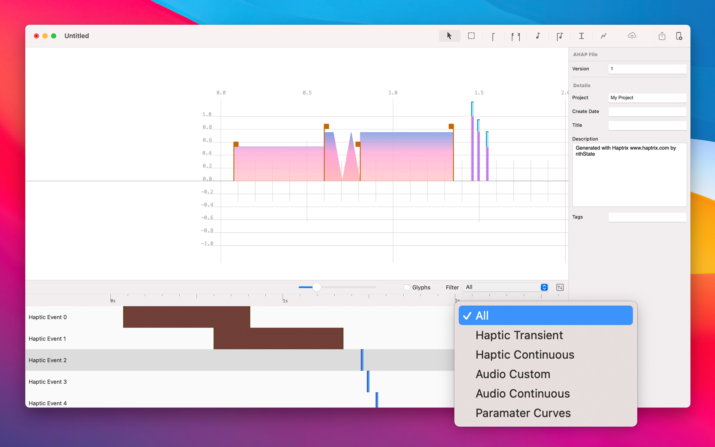 The Haptic format is JSON, I wanted to create an editor that let you draw the experience, and then export that to your iPhone where you could feel it